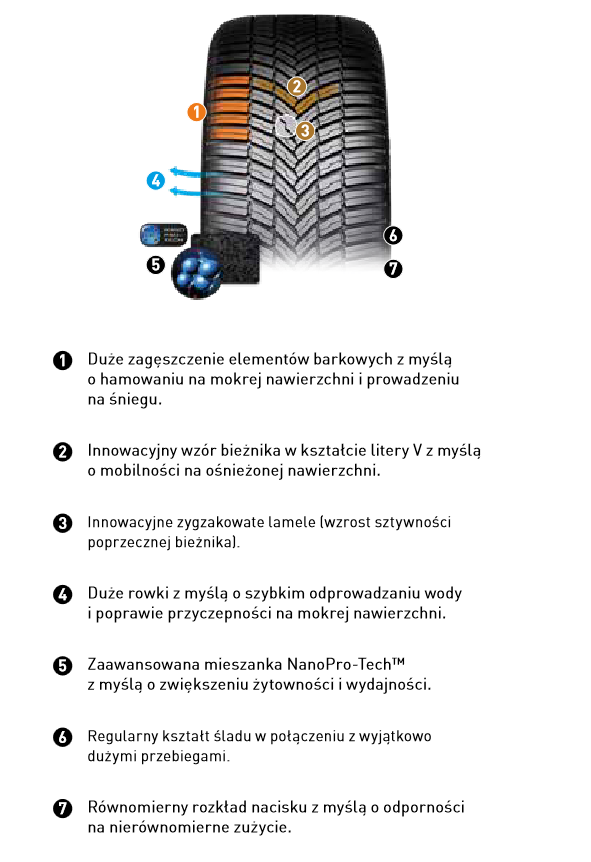 Opony wielosezonowe Bridgestone to doskonały wybór dla kierowców, którzy poszukują opon, które będą działać skutecznie przez cały rok, bez konieczności wymiany między sezonami. Opony te są zaprojektowane, aby zapewnić doskonałą przyczepność i stabilność zarówno na suchej, jak i mokrej nawierzchni, a także w warunkach zimowych. Wszystkie modele opon Bridgestone wielosezonowych wykorzystują zaawansowane technologie, takie jak lamele 3D, NanoPro-Tech czy Driveguard oraz kierunkową konstrukcję bieżnika, które poprawiają przyczepność, trakcję, hamowanie i stabilność jazdy.